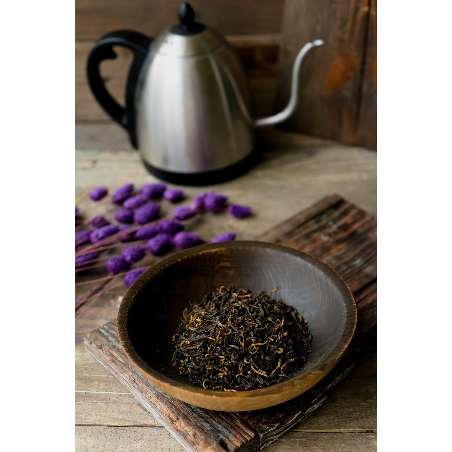 Сухой лист крупный, тёмно-коричневого цвета, с выраженным сладким фруктовым ароматом, который при заваривании раскрывается ещё сильнее, наполняя напиток яркими нотами.
